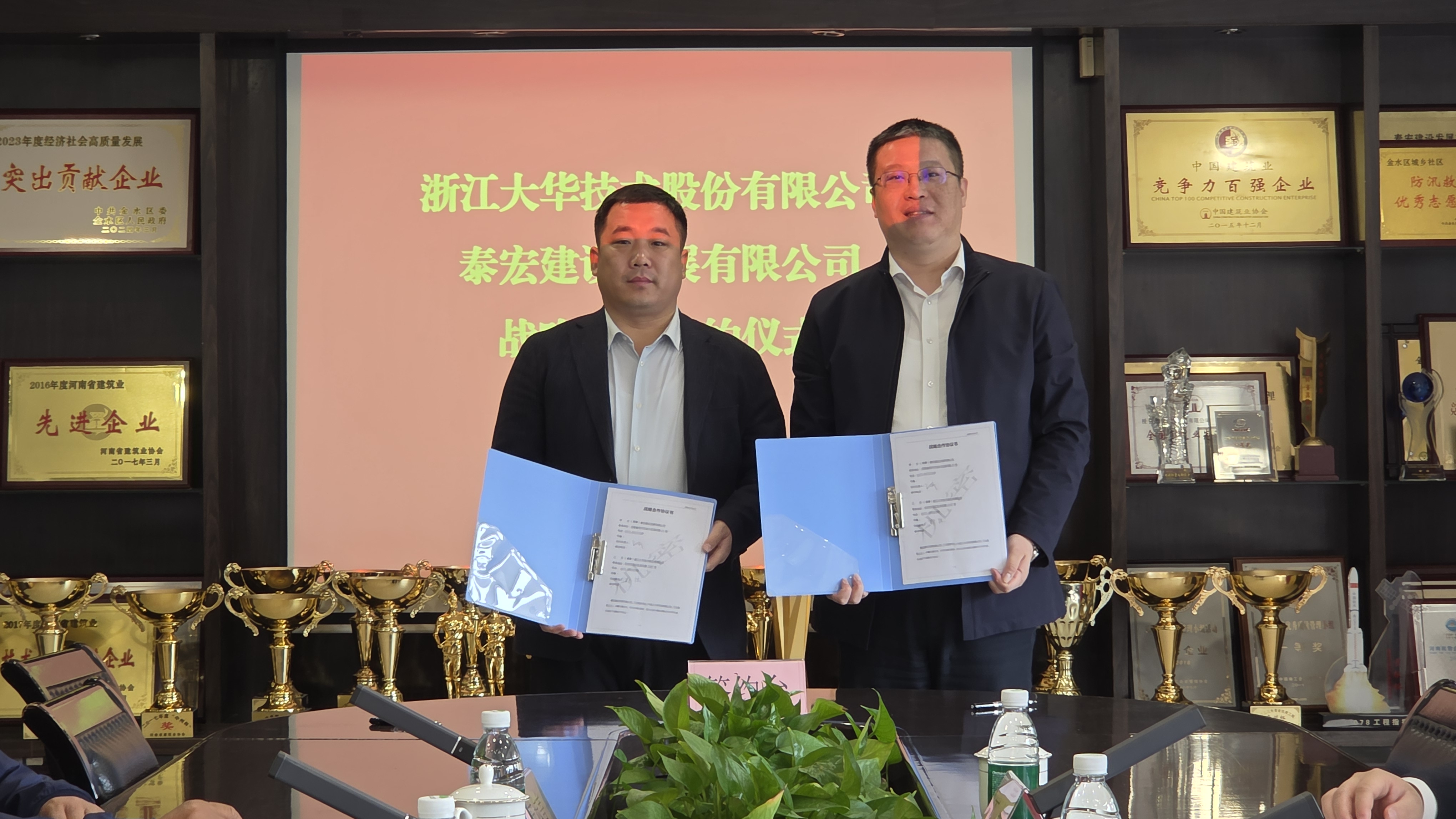 4月1日,泰宏建设发展有限公司与浙江大华技术股份有限公司举行战略合作签约仪式。泰宏建设总经理郭强、专业公司总经理蔡梅青,大华股份河南区域总经理郑顼及双方相关负责人共同出席活动。